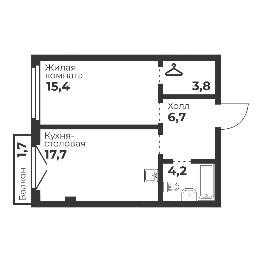 1-комнатная 52.4 м