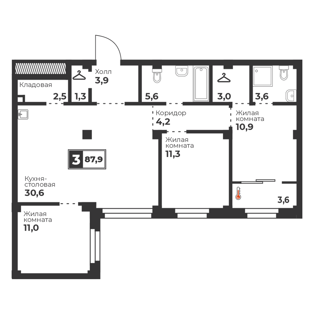 2-комнатная 82.2 м