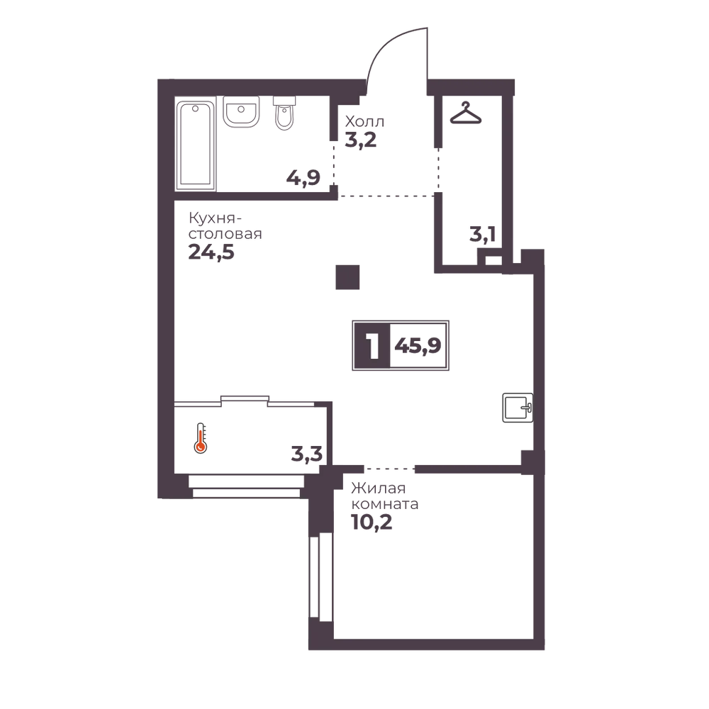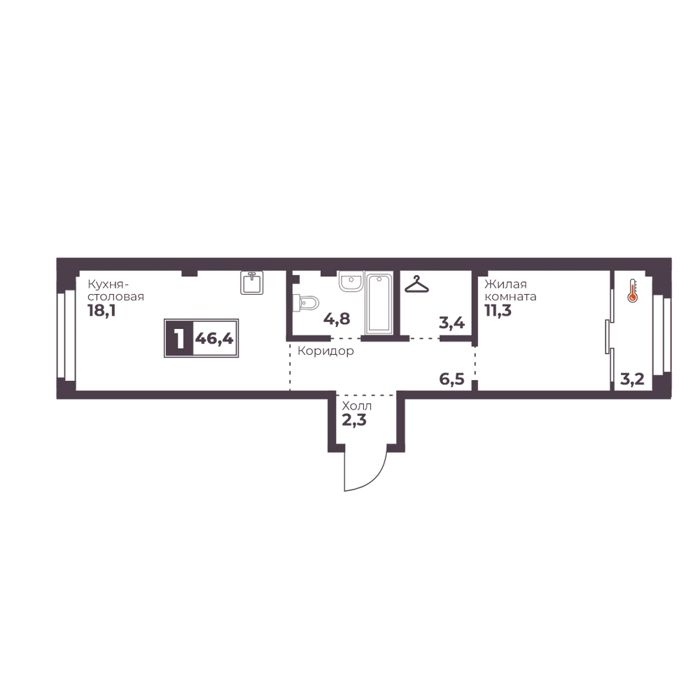 1-комнатная 46 м